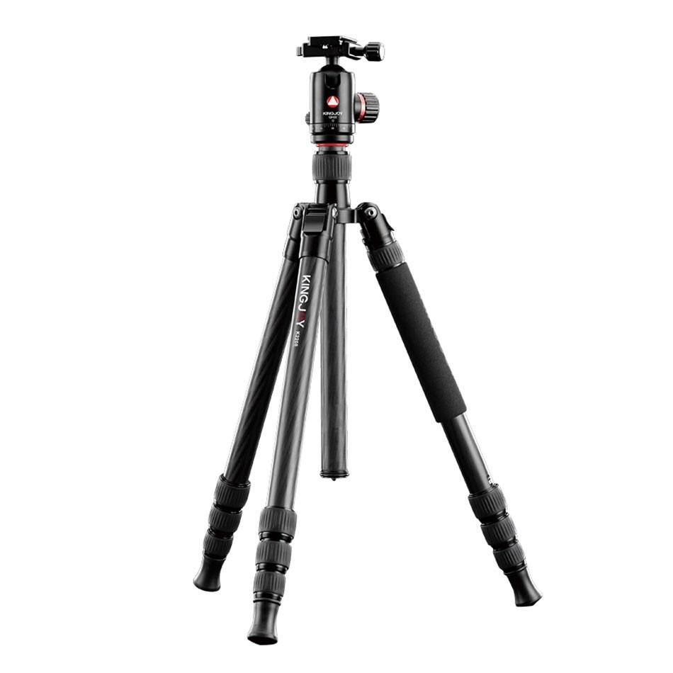 + Middenzuil is te gebruiken als monopod+ Degelijk statief met solide balhoofd+ Licht statief door gebruik carbon De Kingjoy K2208 is een veelzijdig statief. Je kunt de poten in meerdere standen gebruiken, waaronder een lage stand: geschikt voor macrofoto’s laag bij de grond. Ook handig voor macrofotografie: je kunt de middenzuil los gebruiken als monopod. Verder heb je aan de K2008 een degelijk statief van aluminium waar je camera’s tot wel 15 kilo op kunt gebruiken. Ook heeft dit statief verwijderbare spikes onder de poten voor extra grip. Q20 balhoofd De K2008 wordt geleverd met het Kingjoy Q20 balhoofd. Dit balhoofd heeft een snelkoppelingsplaat en een grote kogel om ook grotere en zwaardere camera’s te kunnen dragen. Ook is het balhoofd uitgerust met twee waterpassen om een scheve horizon te voorkomen!