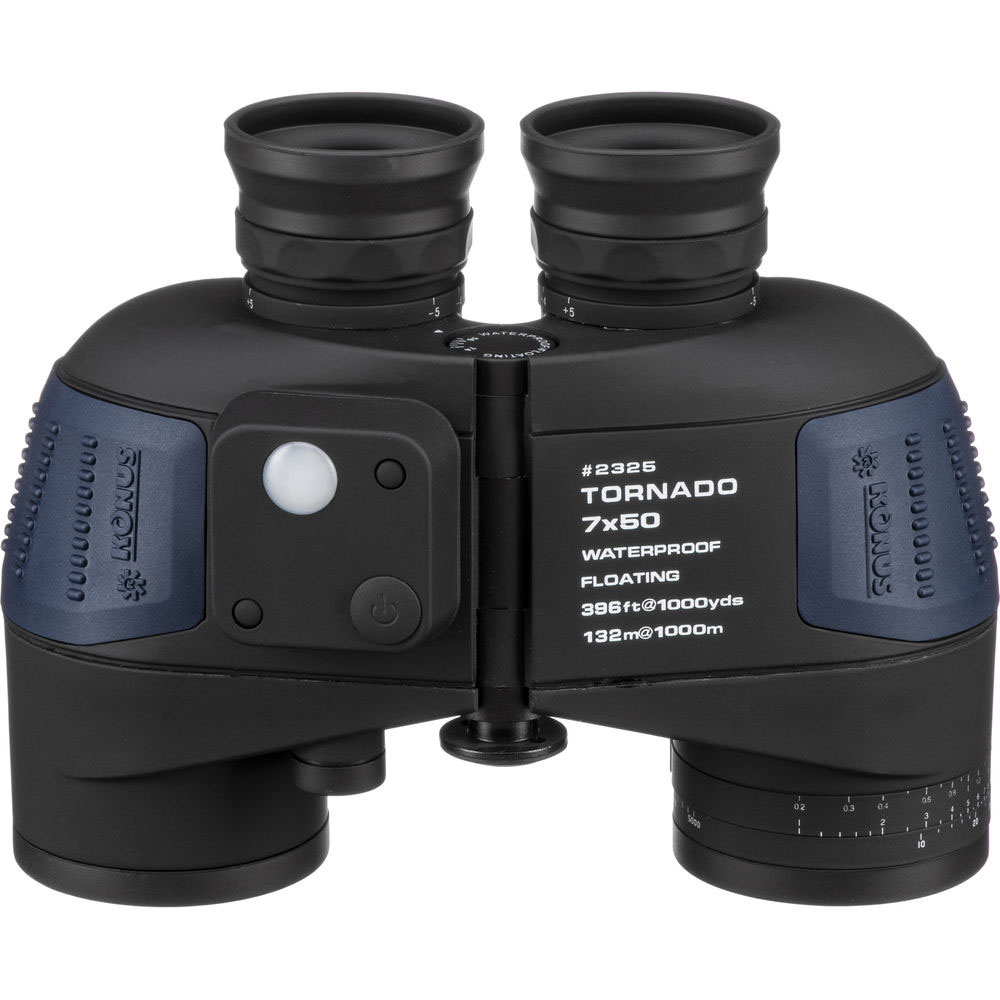 De Konus 7×50 Tornado is een drijvende verrekijker die speciaal ontworpen is voor het gebruik op boten. De kijker presteert buitengewoon goed bij weinig licht dankzij de objectieflenzen met een grote diameter van 70mm. Deze waterdichte verrekijker van 7×50 is uitgerust met een ingebouwd afstandsmeterkruis en een kompas om watersporters te helpen tijdens navigatie. Deze verrekijker heeft een multi-coated optiek voor superieure lichttransmissie en BaK-4-prisma’s om het contrast en de kleurgetrouwheid te verbeteren voor maximale visuele helderheid. De rubberen, gepantserde oppervlakken bieden comfortabele bediening en zorgen voor een veilige grip. De kijker is gevuld met stikstof om volledig mistbestendig te zijn en dankzij het gebruik van O-ringen kan vocht de kijker niet binnendringen.