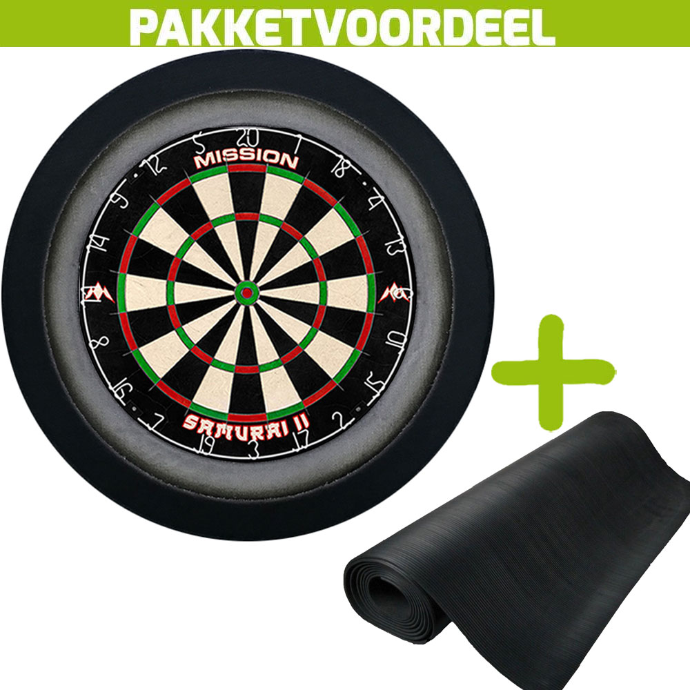 Mission Samurai 2 + Rubberen Dartmat 90*300 + Dartbordverlichting Deluxe (Zwart)