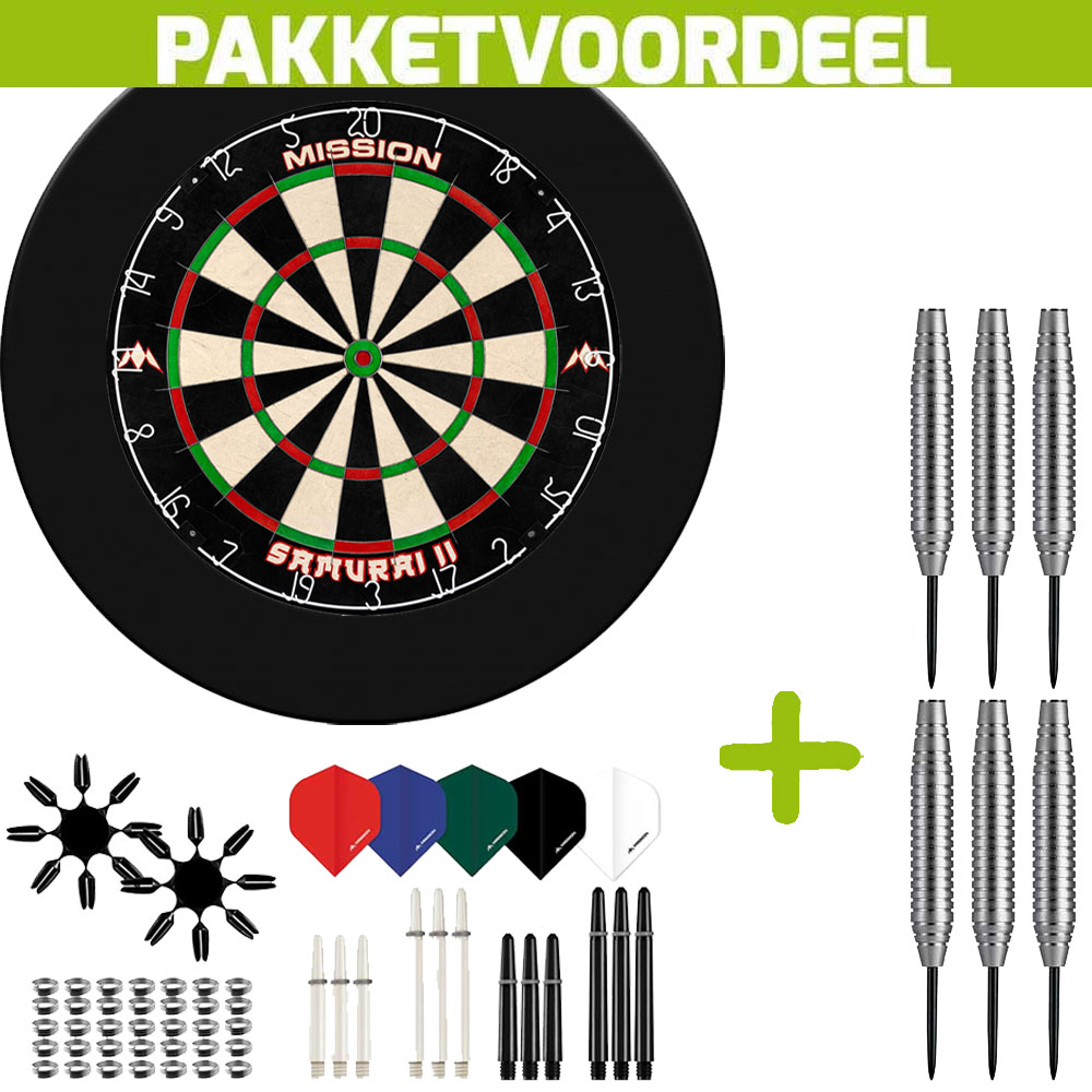 Mission Samurai 2 + Rubberen Surround (Zwart) + 90 Pieces Dartaccesoires