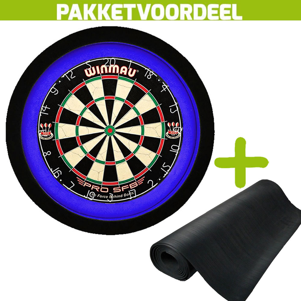Winmau Pro SFB + Rubberen Dartmat 60*250 + Dartbordverlichting Deluxe (Blauw – Zwart)