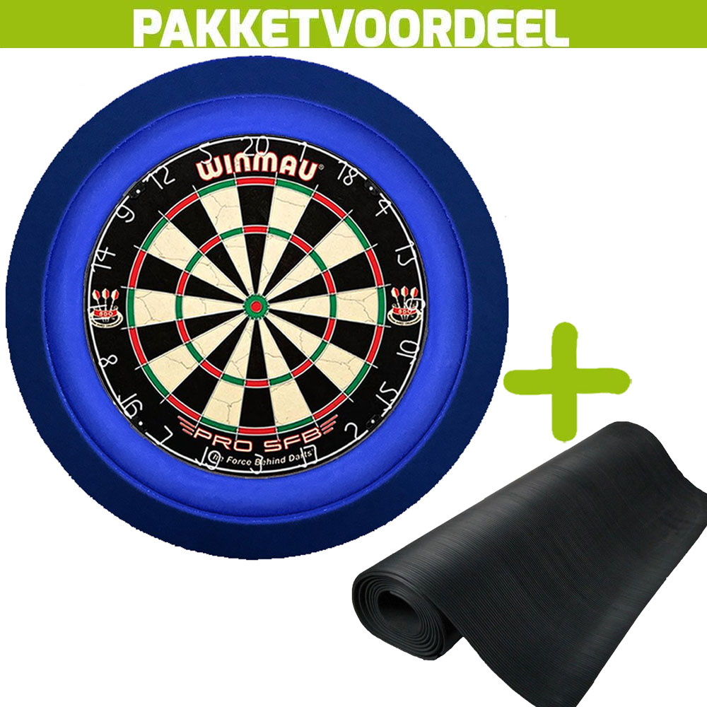 Winmau Pro SFB + Rubberen Dartmat 60*250 + Dartbordverlichting Deluxe (Blauw)