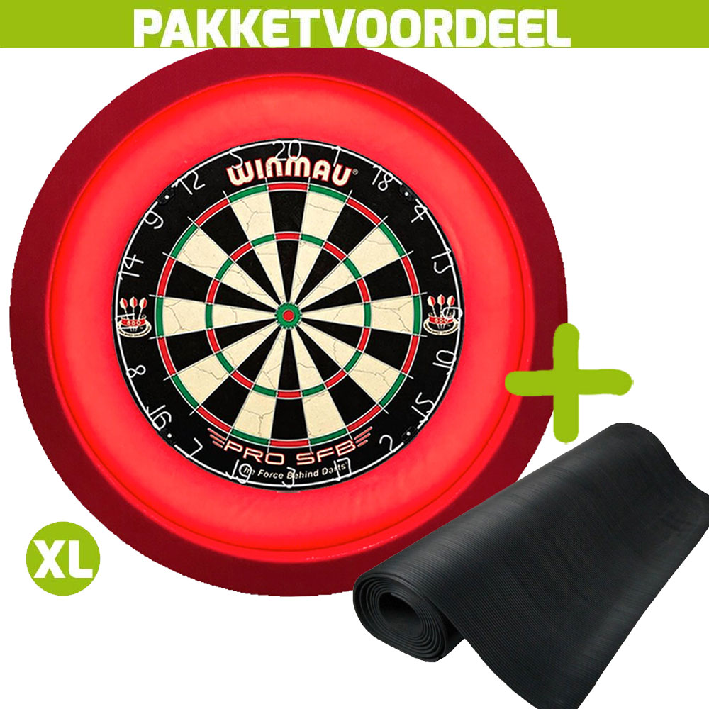 Winmau Pro SFB + Rubberen Dartmat 60*250 + Dartbordverlichting Deluxe XL (Rood)