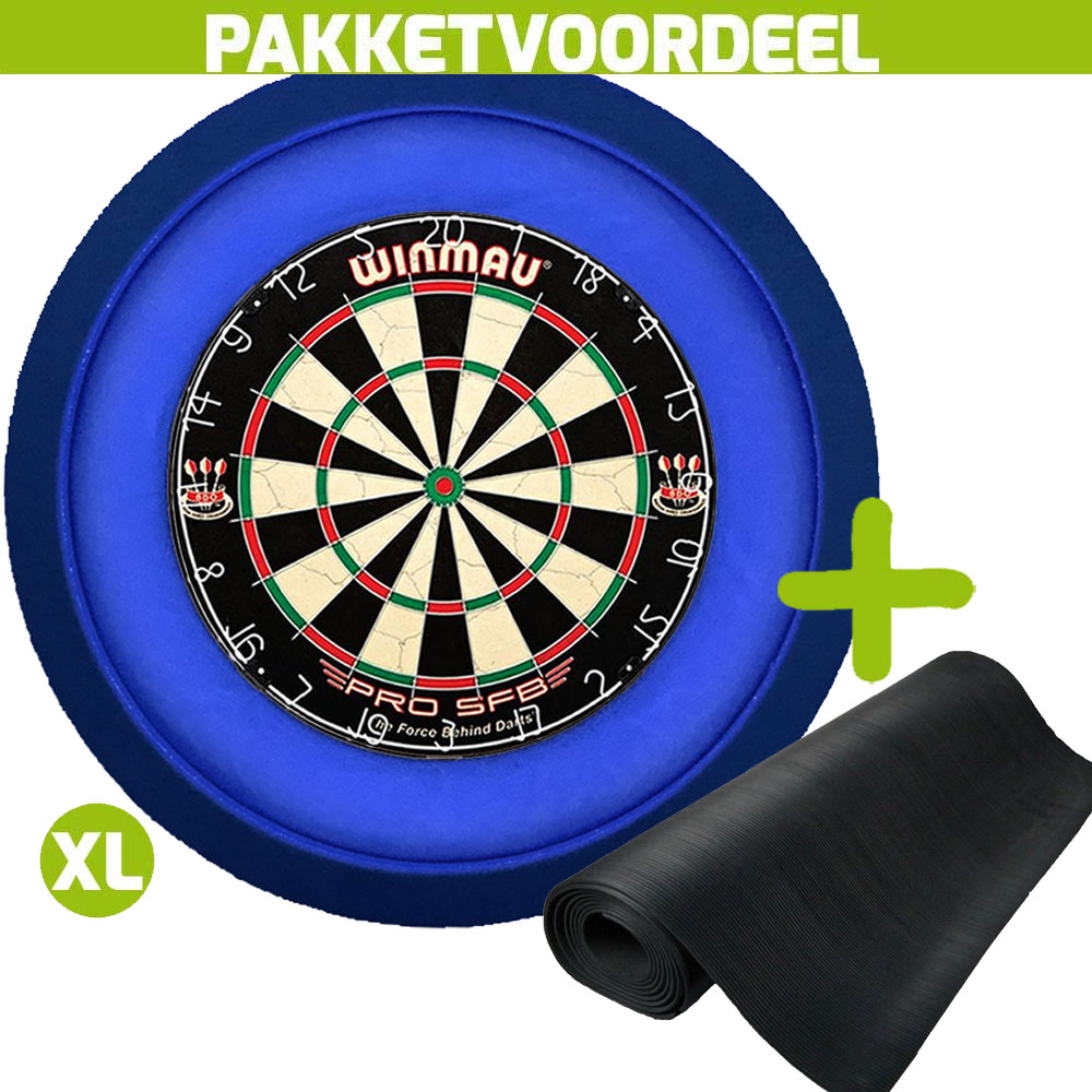 Winmau Pro SFB + Rubberen Dartmat 90*300 + Dartbordverlichting Deluxe XL (Blauw)